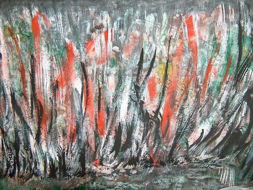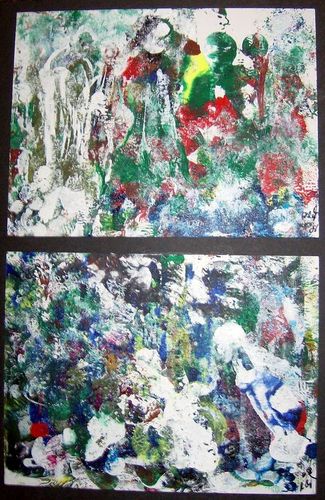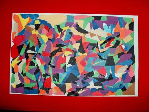 Middle - is another acrylics work I title "African Fire Dance." Far right is Cut paper