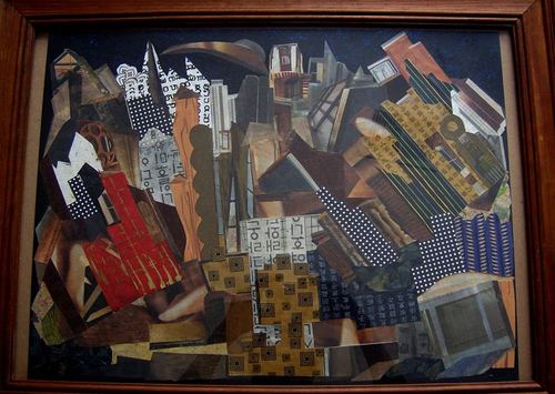 Third row - first work is a cut paper collage - "Village People."