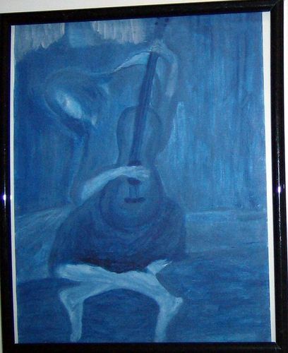 The middle painting is a take on Picasso's "The Old Guitarist." I call it simply - "The Blues." It is a self portrait of sorts.